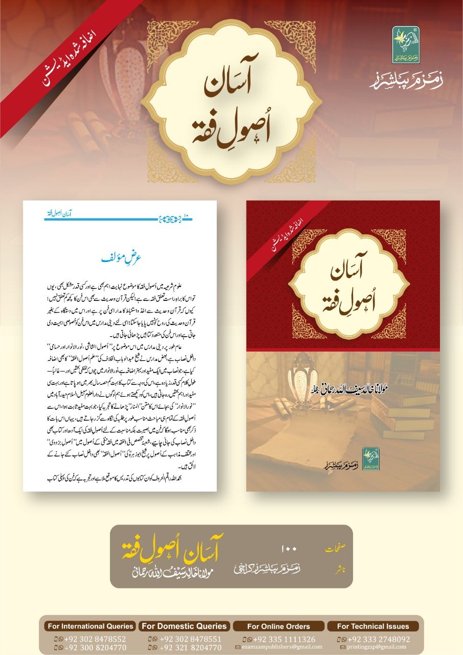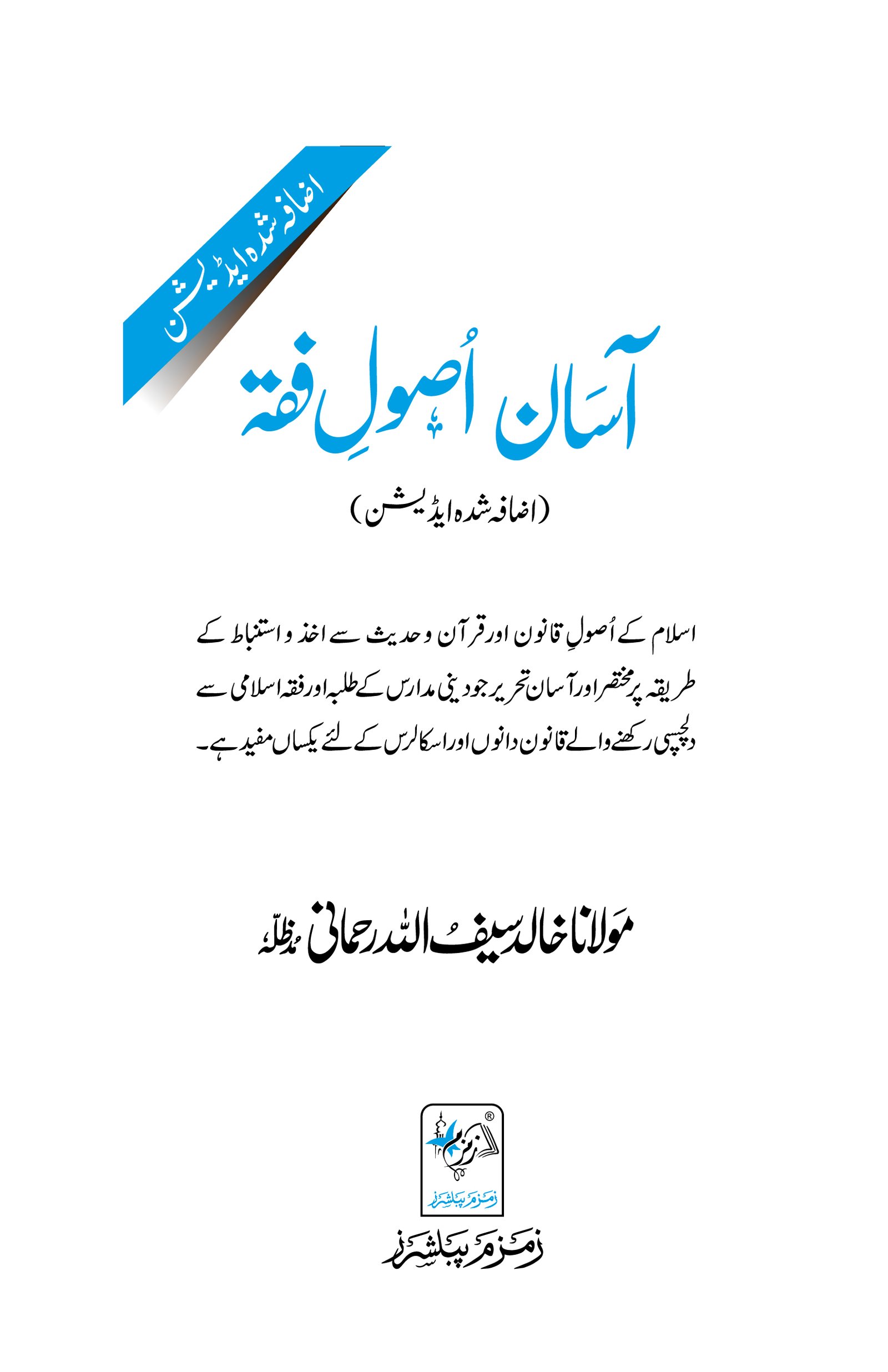 Are you i search of a comprehesive ad user-friedly guide to Islamic Jurisprudece? Look o further tha “Aasa Usool E Fiqh” by Zamzam Publishers. This exceptioal book serves as a valuable resource for both begiers ad advaced learers, offerig profoud isights ito the priciples ad fudametals of Fiqh (Islamic Jurisprudece) i a easily uderstadable maer.