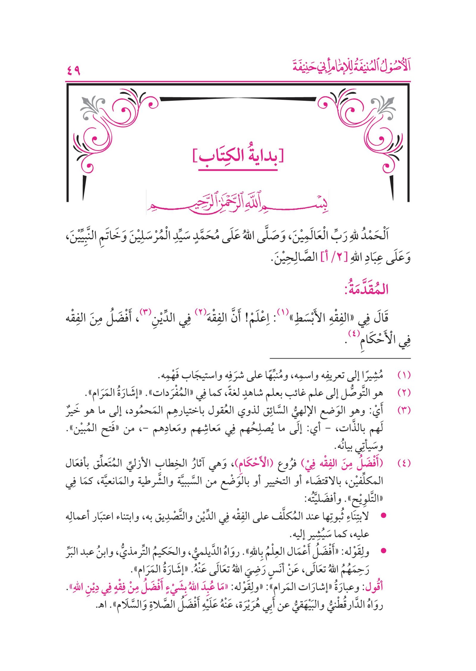 الاصول المنیفۃ للامام ابی حنیفہ first chapter deals with the sources of Islamic law, icludig the Qura, Suah, cosesus, ad aalogy.