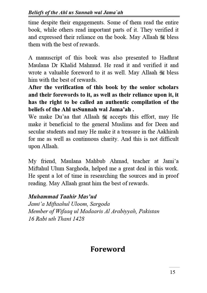 It was my desire that the belief of the Ahl us Suah wal Jamah should be compiled i such a way that it will be beeficial to people of every thought.