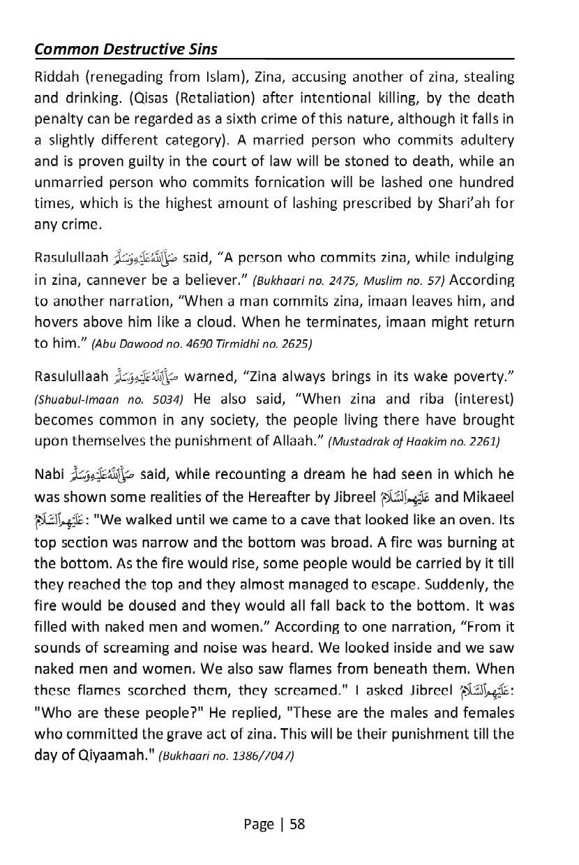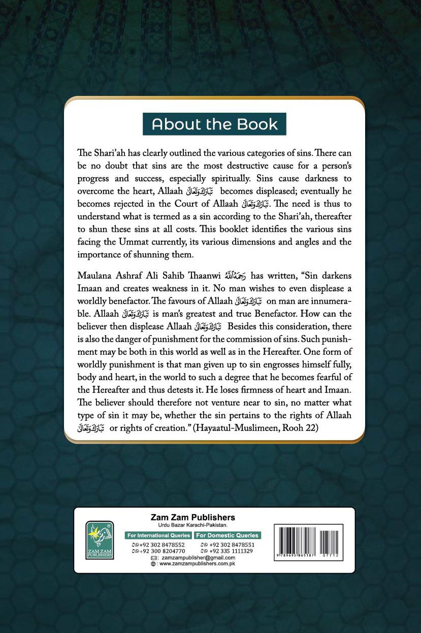 The Shari’ah has clearly outlied the various categories of sis. There be o doubt that sis are the most destructive cause for a perce progress ad success, especially spiritually. Sis cause darkess overcome the heart, Allaah 3 becomes displeased, evetually be becomes rejected i the Court of Allah The eed is thus to uderstad what is termed as a si accordig to the Shariah, thereafter to sha these sis at all costs. This booklet idetifies the various sis facig the Ummat curretly, its various dimesios ad agles ad the importace of shuig them.