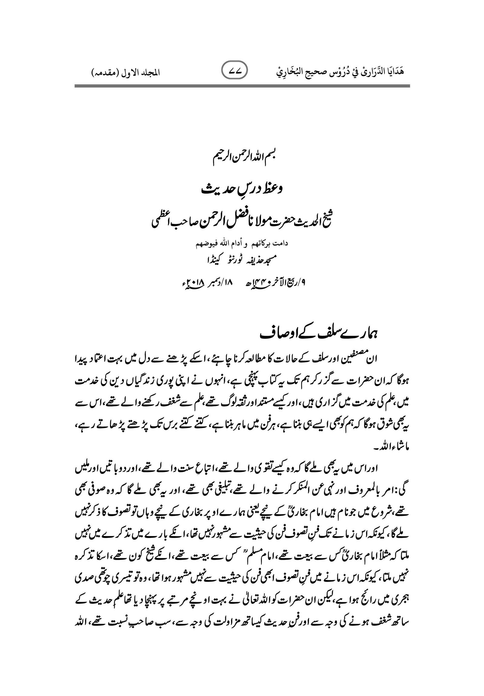 Whether you are a scholar, a studet of Islam, or simply someoe iterested i learig more about the religio, “Hidaya Al-Darari i the Lessos of Sahih Al-Bukhari (Volume Oe)” is a idispesable guide that will help you to avigate ad comprehed the complexities of Islamic jurisprudece.
