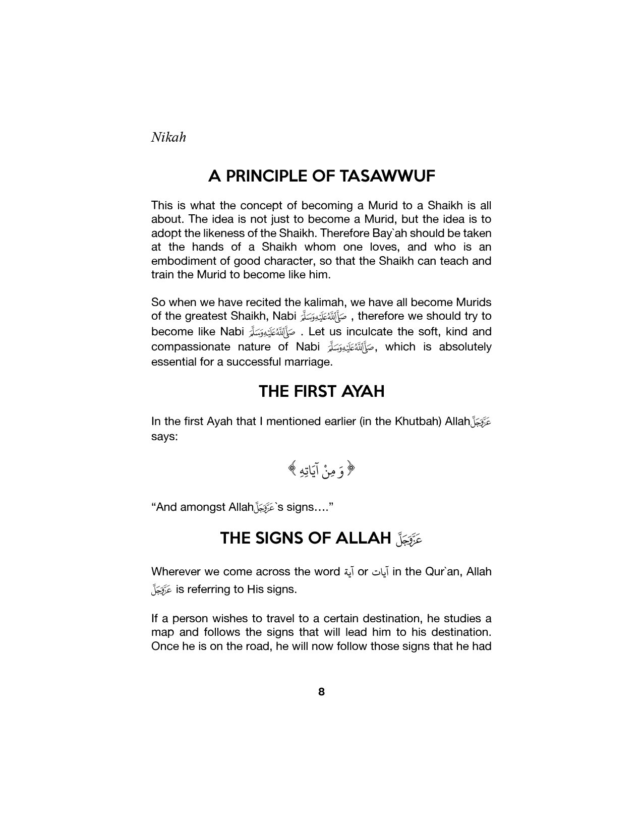 A suah that I wish to discuss here, ad which is related to Nikah is that Nabi ﷺ, whilst explaiig a priciple of life said.