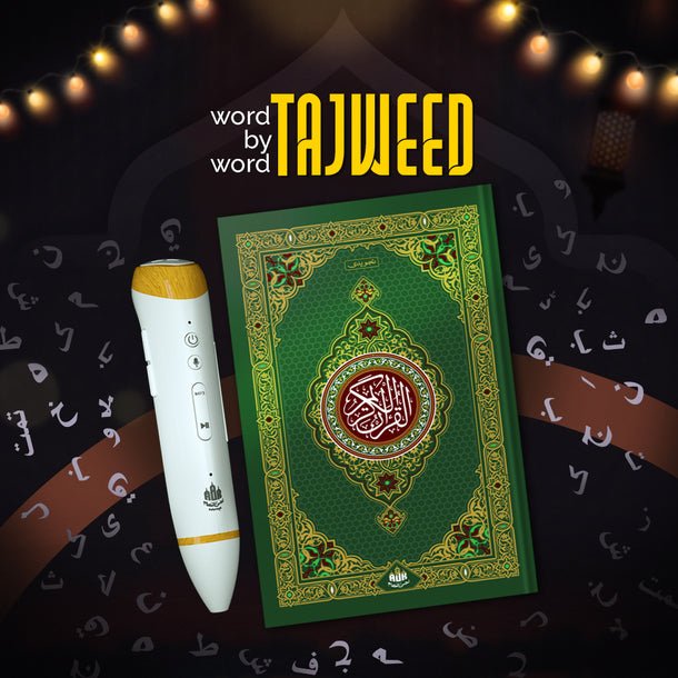 Smart Digital Pen: A high-tech learning tool that reads out verses, translations, and Tajweed rules instantly upon touching the page.