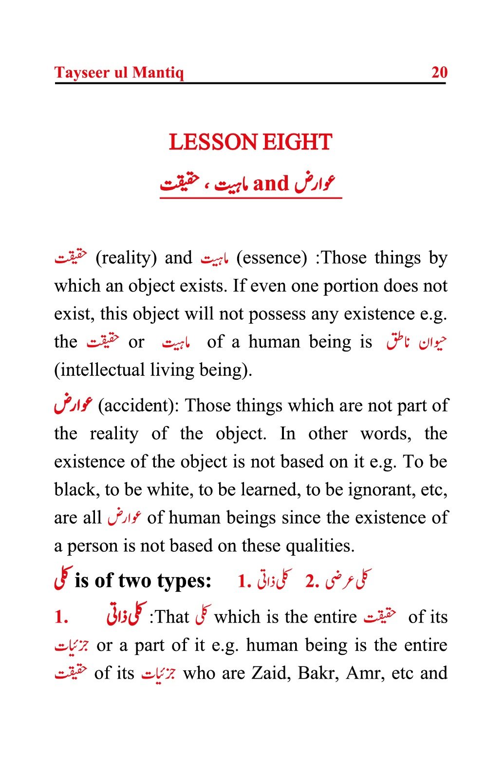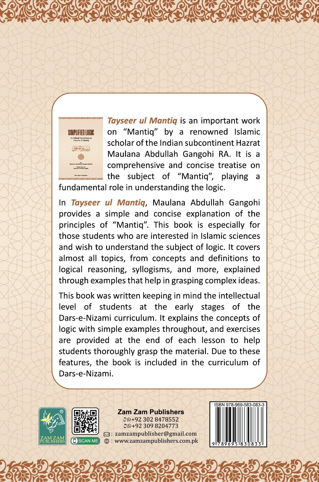 I this era, the academic abilities of studets has become very weak, especially i matters related to uderstadig. Therefore, Moulaa Abdullah Gagohi Saheb prepared this book “Tayseerul Matiq” so that studets ca have a uderstadig of these techical terms i their ow laguage, before studyig the subject i greater detail i the Arabic laguage.