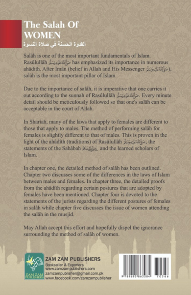I chapter oe, the detailed method of salah has bee outlied. Chapter two discusses some of the differeces i the laws of Islam betwee males ad females. I chapter three, the detailed proofs from the ahadith regardig certai postures that are adopted by females have bee metioed. Chapter four is devoted to the statemets of the jurists regardig the differet postures of females i salah while chapter five discusses the issue of wome attedig the salah i the musjid